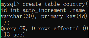 1 | create table country(id int auto_increment ,name varchar(30), primary key(id) ); |